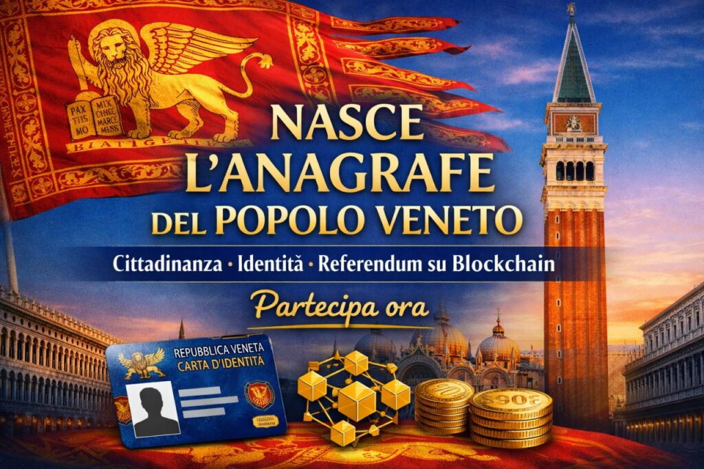 31.10.25 -SISTEMA AUTODETERMINATO IMPRESE VENETE. Il Popolo Veneto, istituisce il Registro delle Imprese Autodeterminate Venete (RIAV), l’Assicurazione Privata Lavoro Veneto (APLV) e l’Autorità Veneta per gli Standard